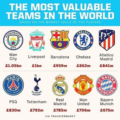 트랜스퍼마켓 선정! “현재 세계에서 가장 가치 높은 구단 TOP10”