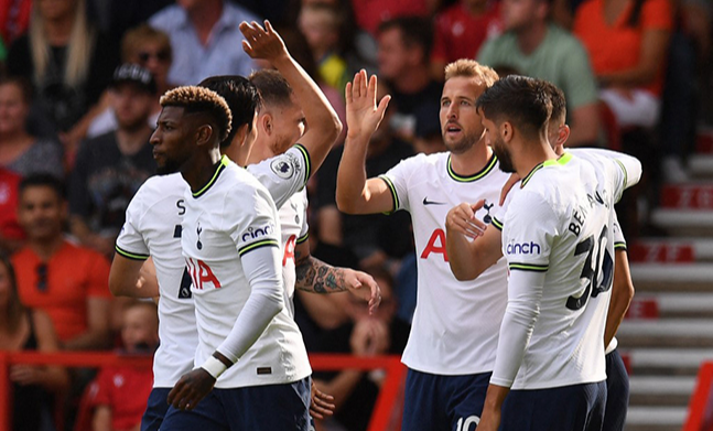 32분 케인의 전진 패스 , 이어 손흥민이 슈팅을 시도하지만 오프사이드가 선언되고 34분 브래넌 존슨이 헤딩을 시도하지만 골대를 벗어난다.