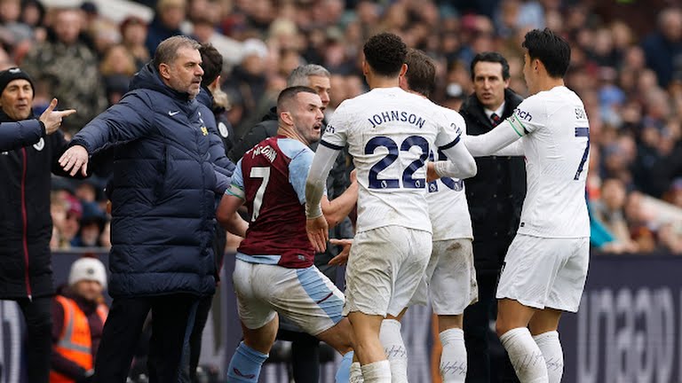 64분 드라구신이 공을 빼앗기고 맥긴이 슈팅을 시도하지만 비카리오가 막아내고 65분 우도기가 맥긴의 거친 태클에 넘어지고 포로가 보복하며 선수들이 말리기 시작한다.