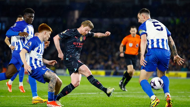 리버풀이 패배하며 우승 경쟁에서 아스널, 맨시티 두 팀의 경쟁 체제로 유력해진 가운데 맨시티는 데 제르비의 브라이튼에게 4-0 대승을 거뒀다.