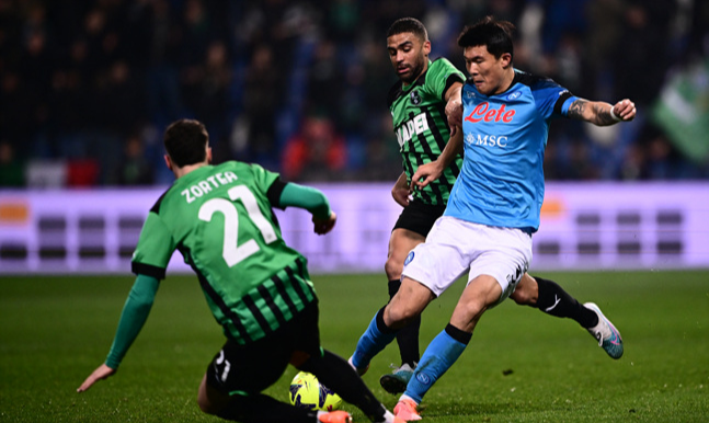 이제 리그 우승 소식만이 기다려지는 나폴리의 경기 , 사수올로에게 2-0 승리하며 리그 7연승을 기록하게된다.