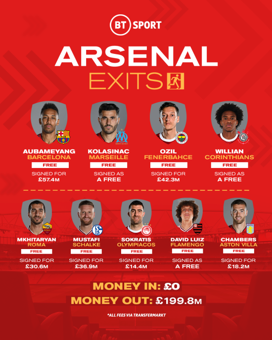 파블로 마리 , 체임버스 , 나일스 , 오바메양 등 아스날은 기용하지 않을 선수들을 모두 임대나 방출로 떠나보냈다.