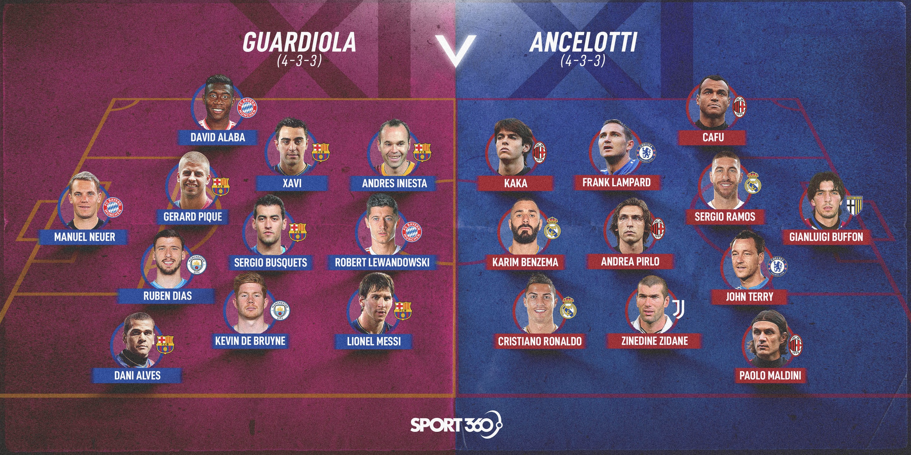 펩 과르디올라는 바르셀로나 , 바이에른 뮌헨 , 맨시티를 거친 감독 치고 젋은 감독이라고 말한다면 반대로 카를로 안첼로티는 풍부한 경험을 가지며 다양한 구단들을 거친 내공이 높은 감독이었다.
